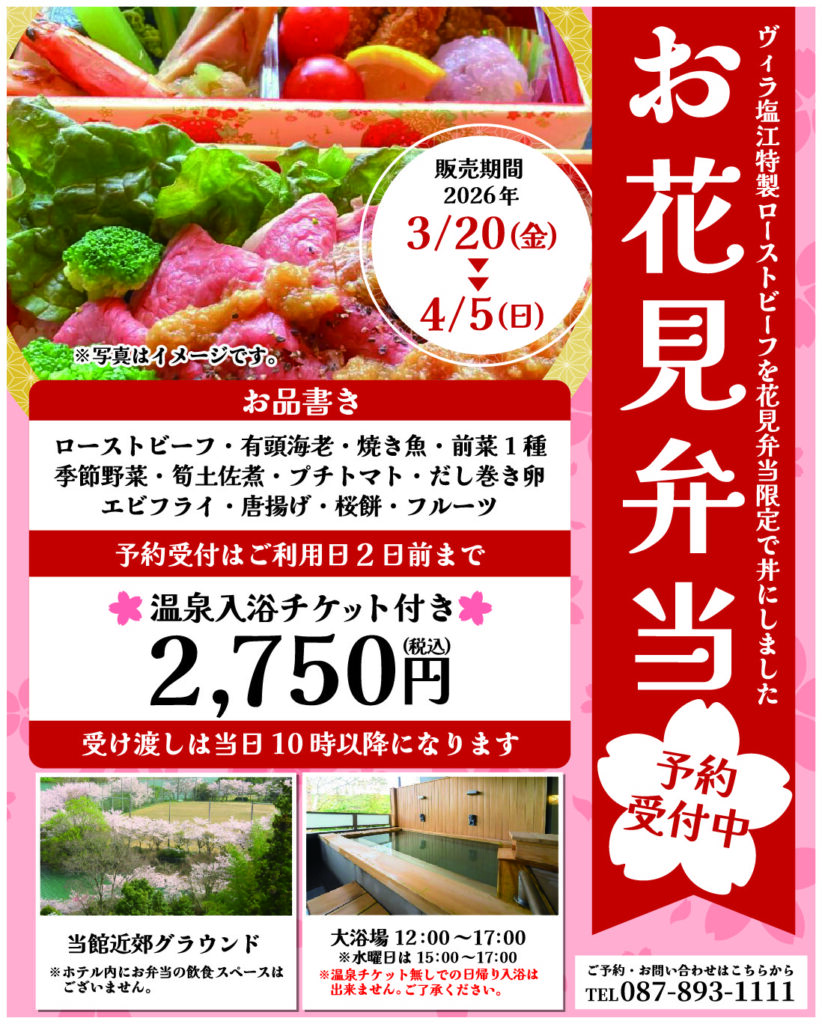 ヴィラ塩江特製お花見弁当、ご予約承ります。